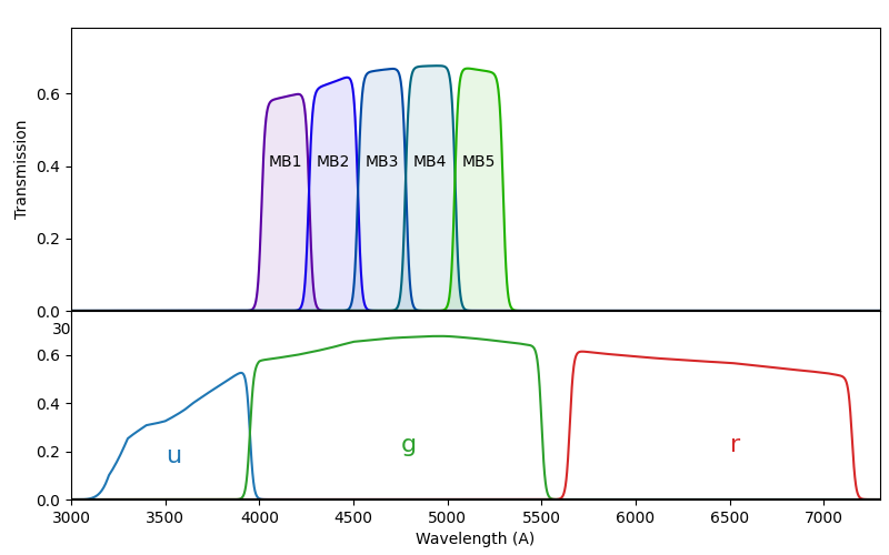 For the upcoming DESI-2 experiment, we’re going to use a different set of filters – 5 filters within the “g” band – basically ranging from violet to green – so figuring out how to represent those in RGB is a real challenge!