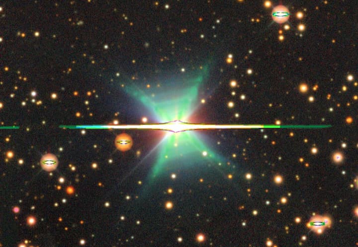 Speaking of nearby nebulas happy to see this finally show up on viewer. Ironically called the Red Rectangle Nebula HD 44179. Bruce Banner I guess cause it looks green now.