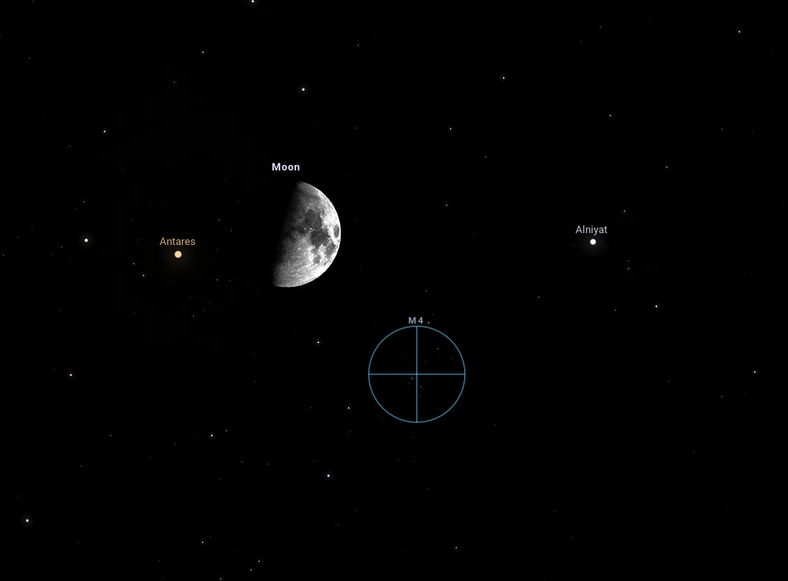 Bad news, I missed the alignment of the moon with Messier 4 and Antares.