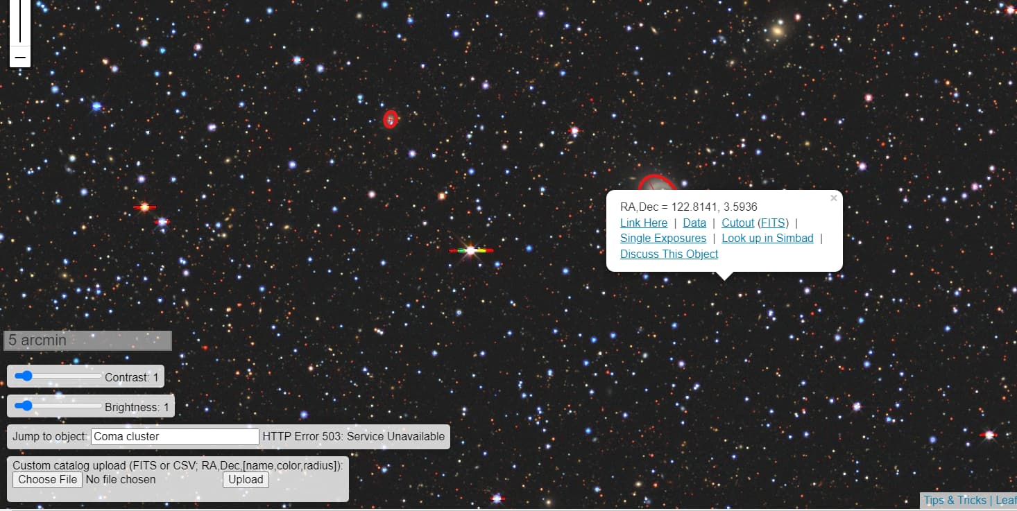 The search bar is down: I get this message when entering an object. I want to take a shortcut to the coma cluster but it doesn’t direct to the Coma cluster. The coordinates and random NGC searches work fine, however.
