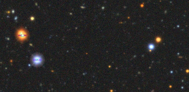 There is also an object 45 degrees from the star that does not appear (clearly at least) in the g band, but does in the i, r, and z bands. Could be a brown dwarf or something, but I am not sure at all.